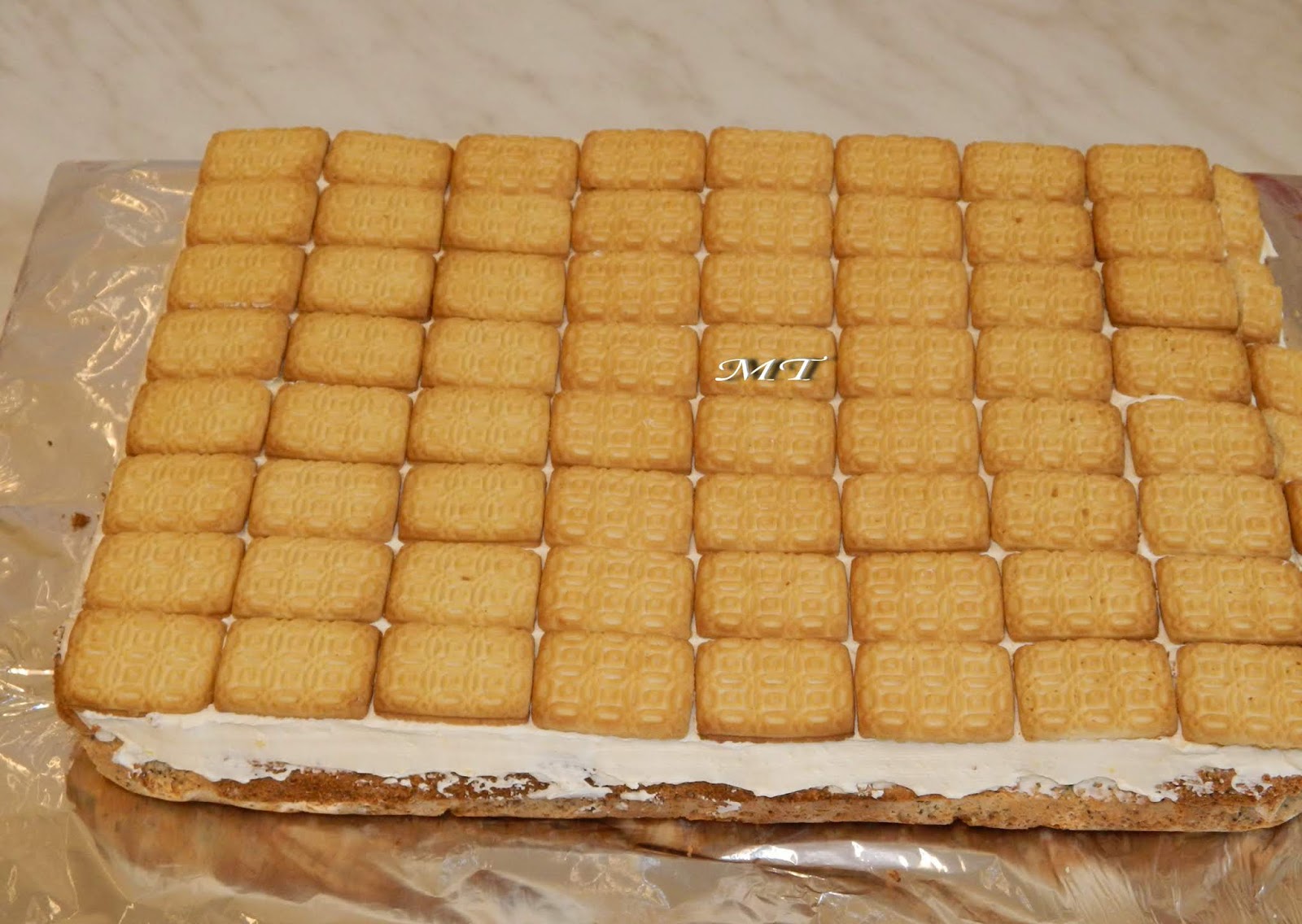Peste cremă se aşează biscuiţii Picnic (3 pachete).