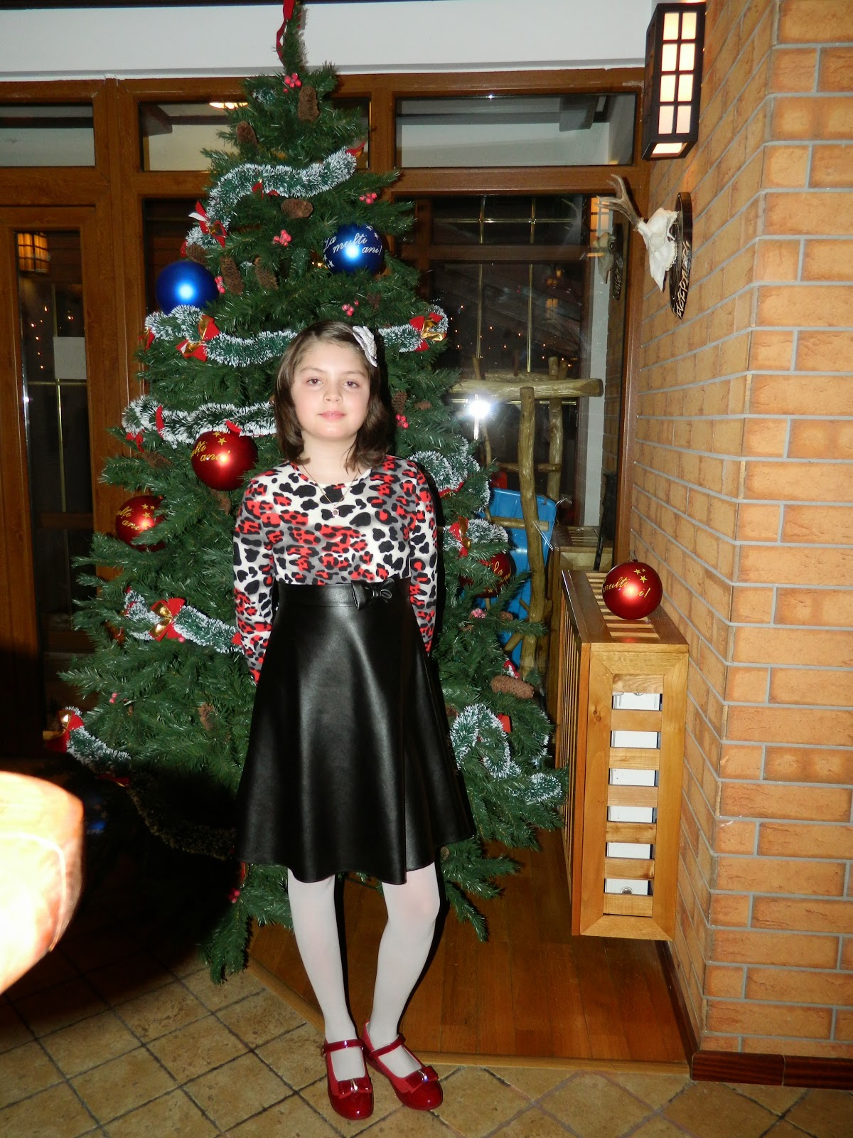 Fata mea a crescut şi nu mai vrea danteluţe, volănaşe... a vrut imitaţie de piele combinată cu tricot. A văzut ea o rochie într-un magazin, dar era mică de ea şi cum i-a plăcut, am comandat material şi i-am făcut rochia pe care a purtat-o de Anul Nou.